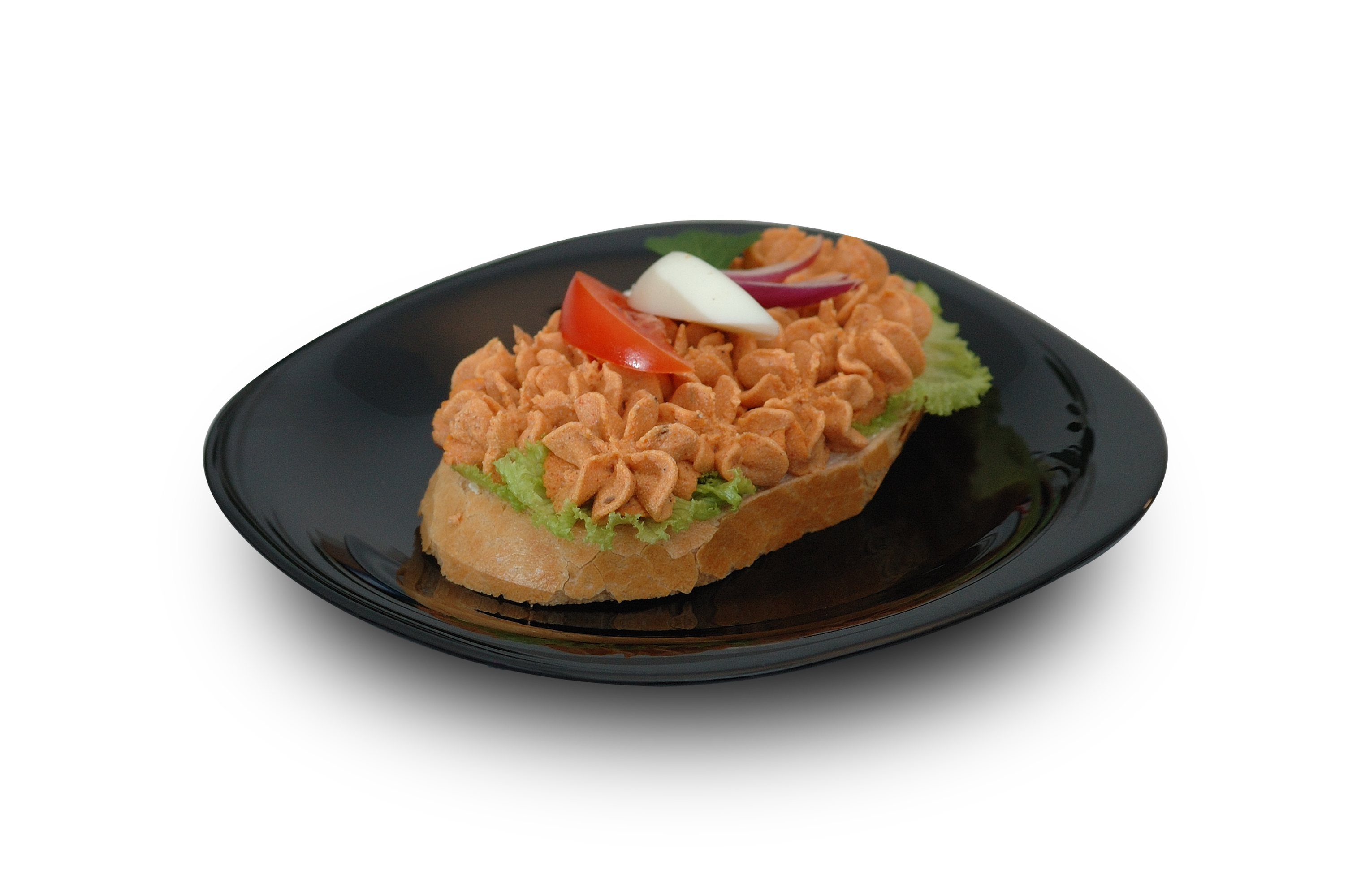 Összetevők: zsúr kenyéren vajkrém, salátalevél ,francia saláta , lazac, díszítés
